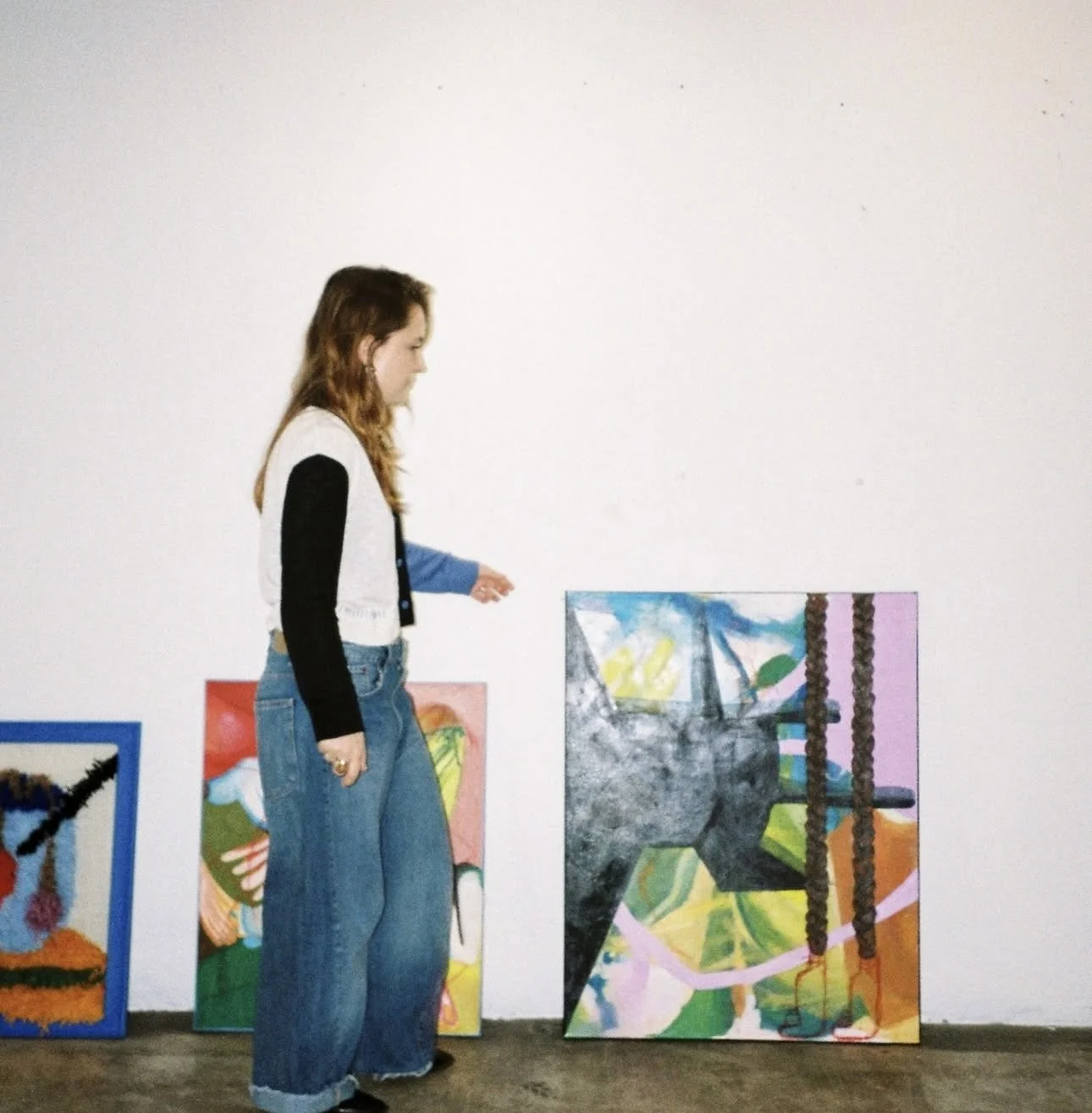 La artista desarrolla su práctica a través del tufting y la pintura, con las que investiga dos formas distintas de hacer imagen: una más controlada y repetitiva, ligada a lo matérico, y otra más inestable, donde la imagen se prueba y se transforma en el momento.